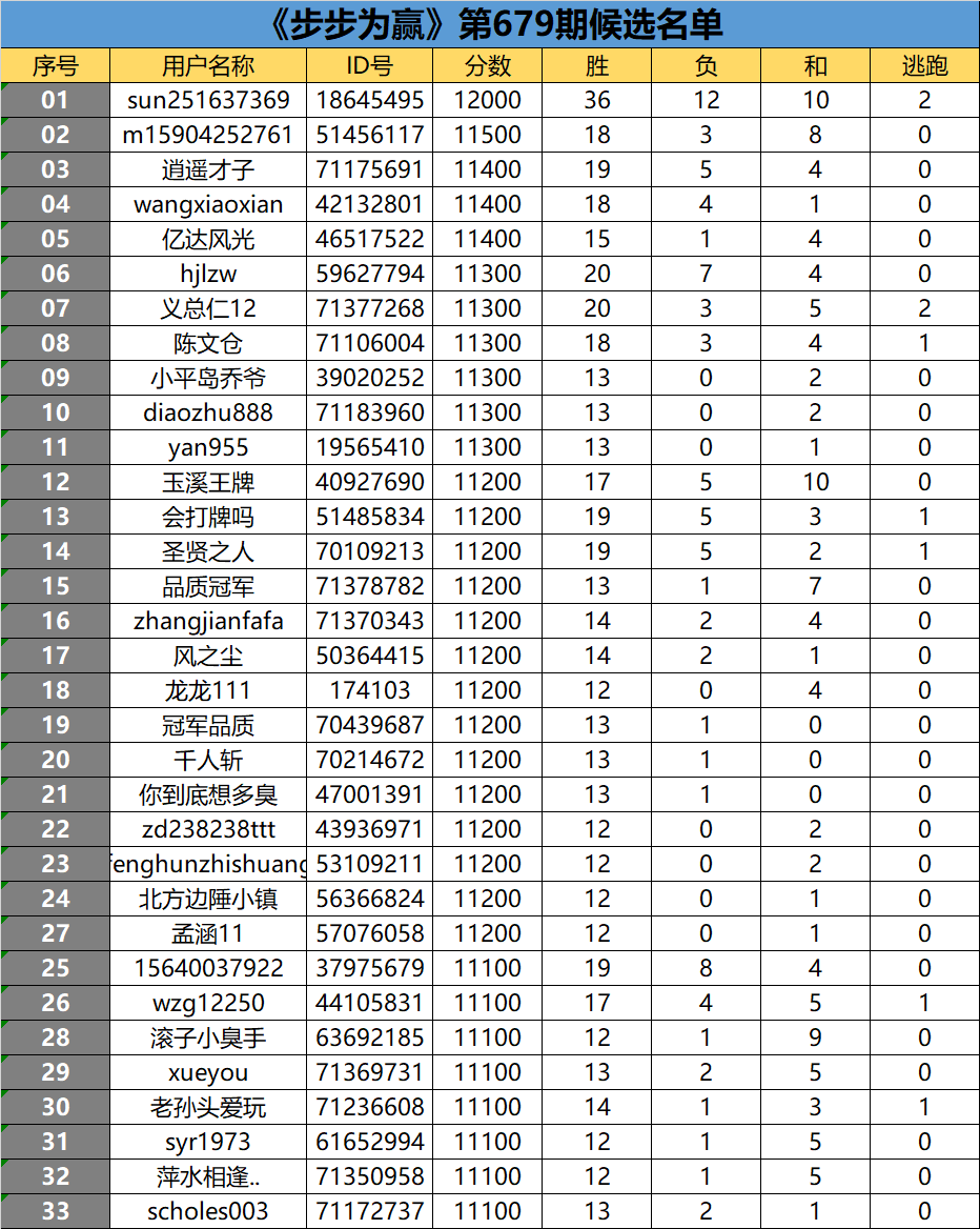 《步步为赢》第679期候选名单公布公告