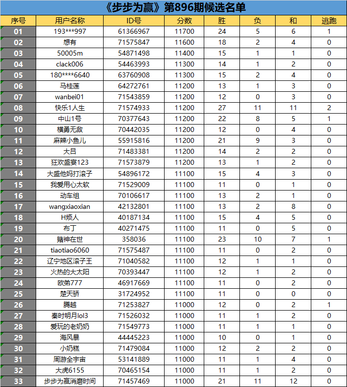 《步步为赢》第896期候选名单公布