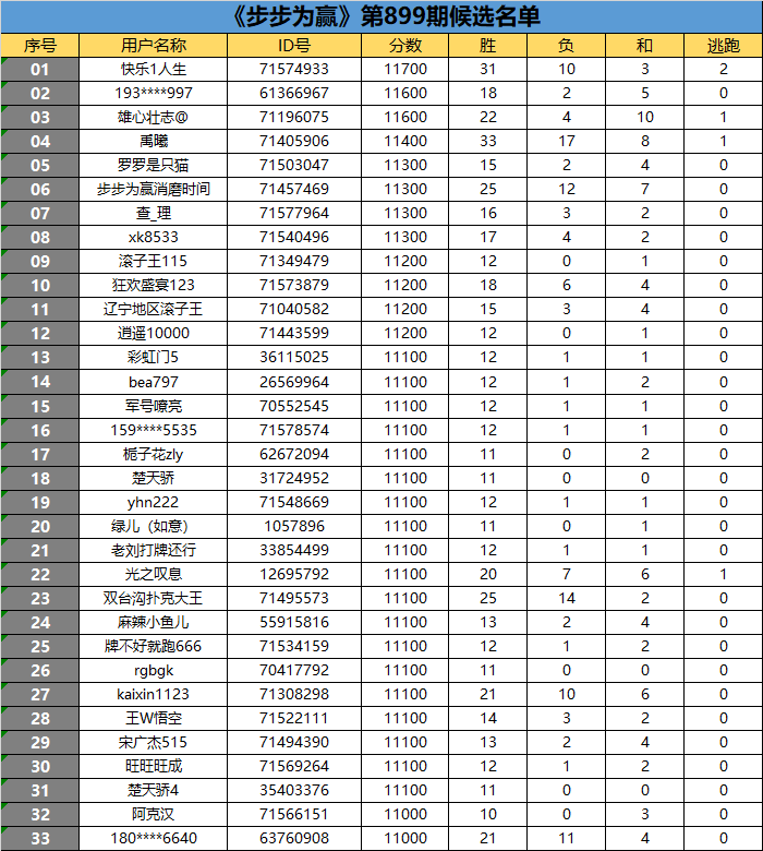 《步步为赢》第899期候选名单公布