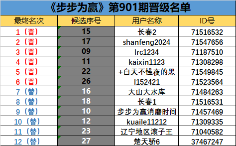 《步步为赢》第901期晋级名单公布