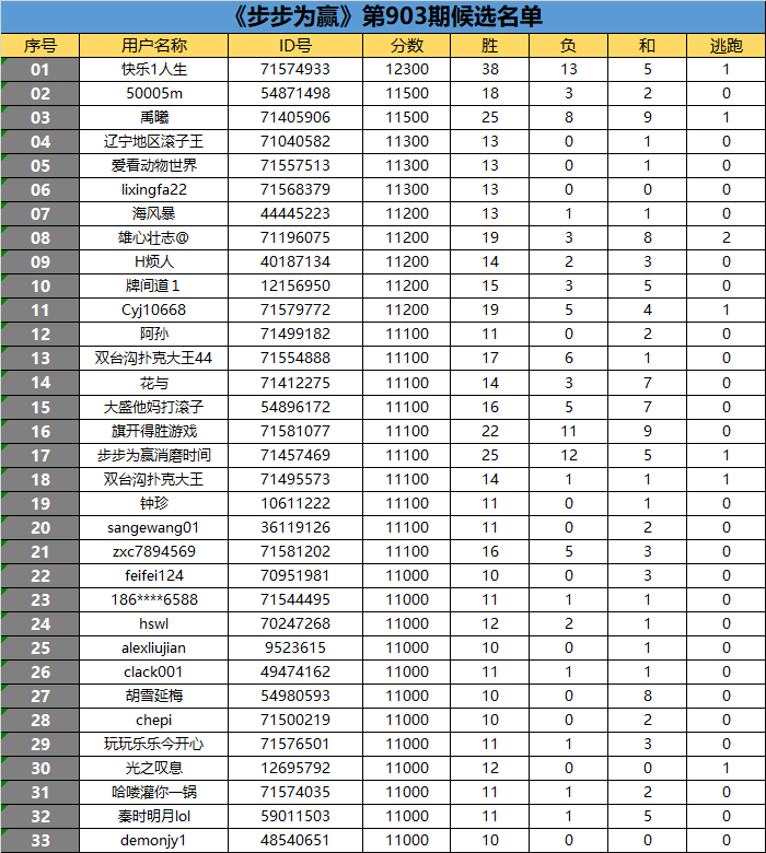 经过一周的激烈角逐,《步步为赢》第903期网络海选的33名候选选手已经揭晓。