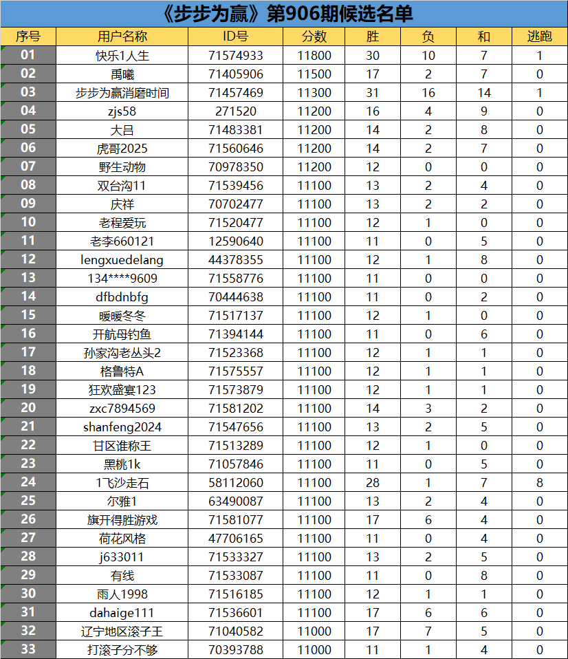 《步步为赢》第906期候选名单公布