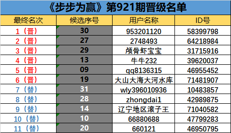 根据2026年1月15日中国福利彩票“双色球”玩法第26007奖结果,《步步为赢》第921期晋级名单已经产生。