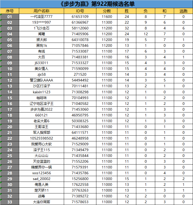 《步步为赢》第922期候选名单公布