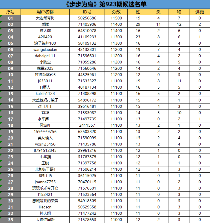 经过一周的激烈角逐,《步步为赢》第923期网络海选的33名候选选手已经揭晓。