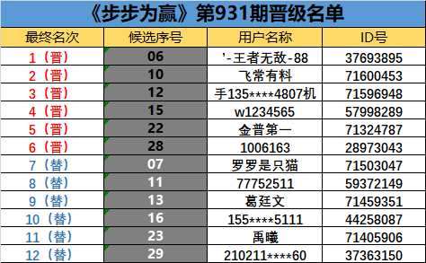根据2026年4月2日中国福利彩票“双色球”玩法第26036奖结果,《步步为赢》第931期晋级名单已经产生。